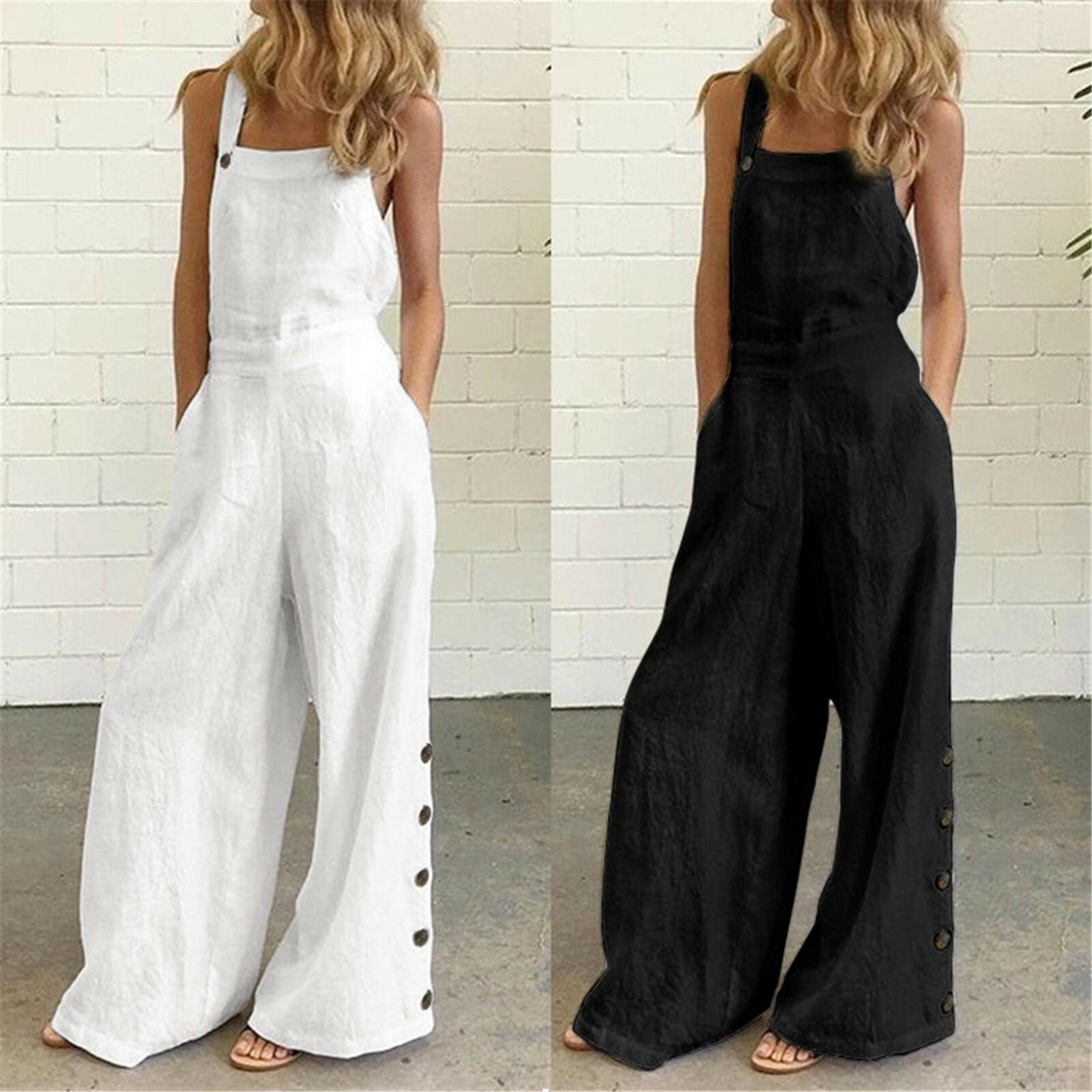 Women Baggy Bib Overalls Harem Playsuit Dungarees Jumpsuit Flare Wide Leg Pants Ebay