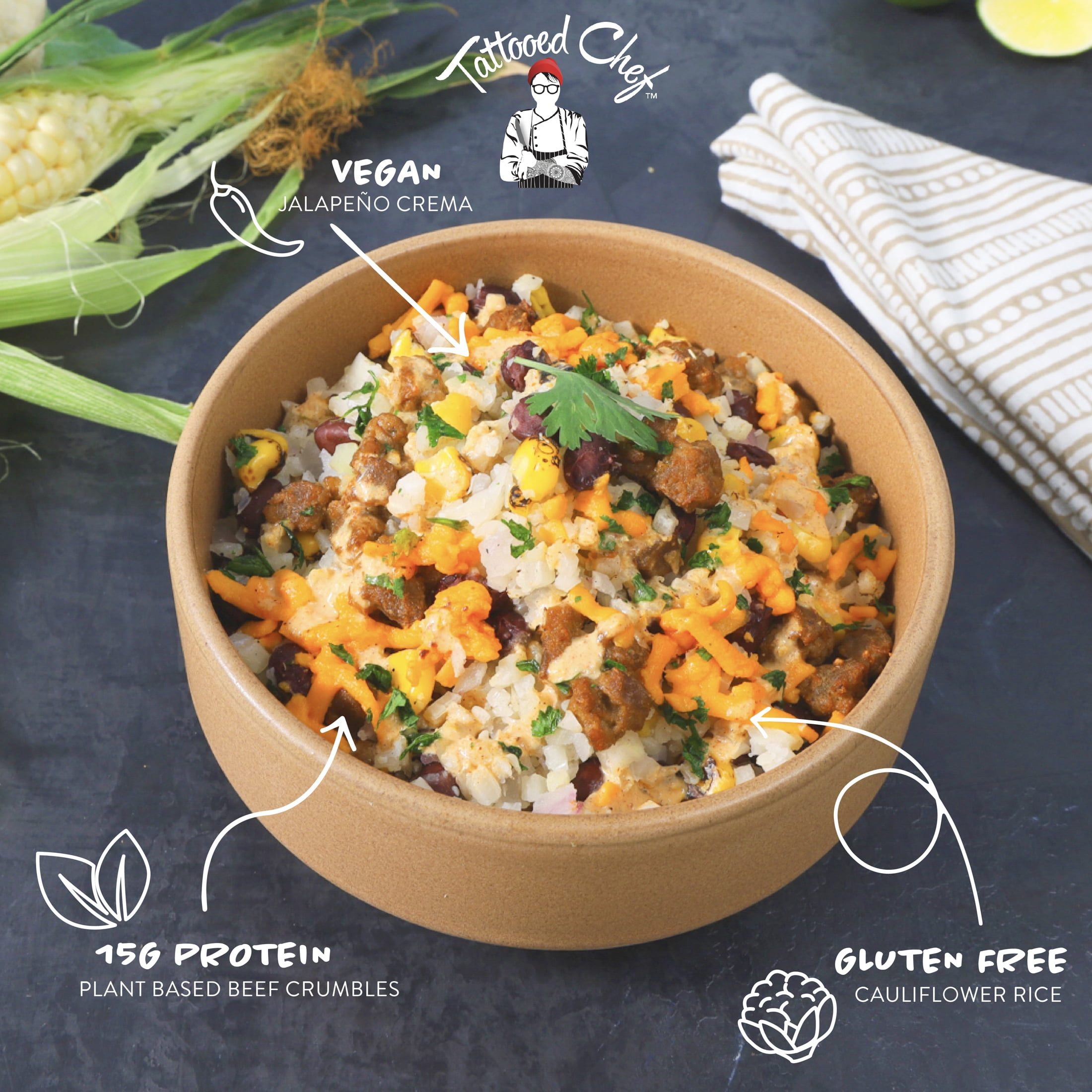 Plant Based Beef Burrito Bowl Tattooed Chef